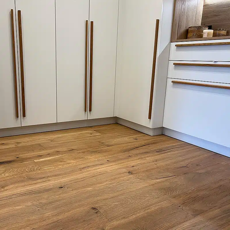 Parquet Sand en chêne contrecollé, finition : huilé naturel, aspect : raboté main.