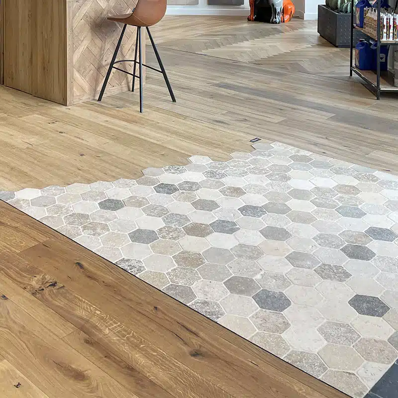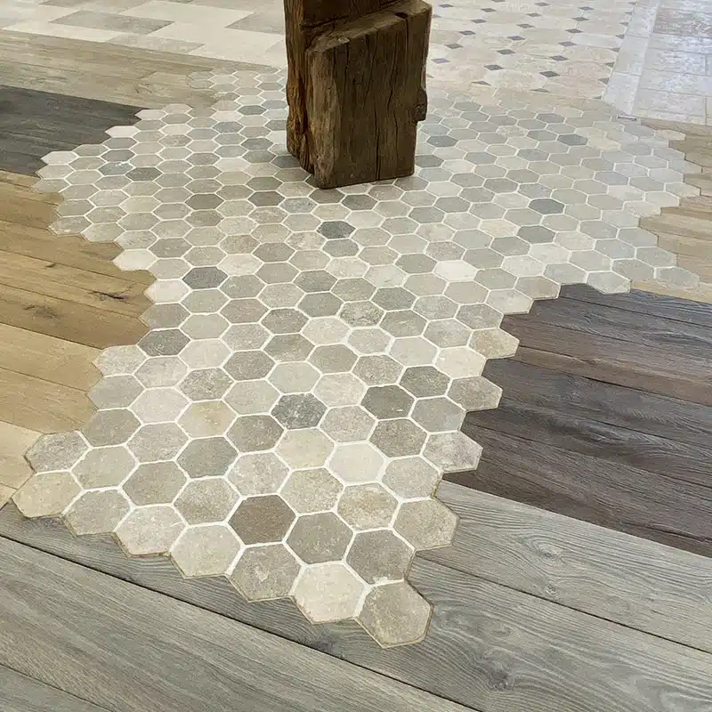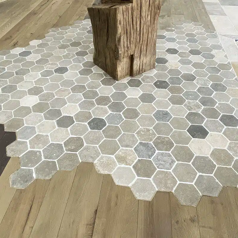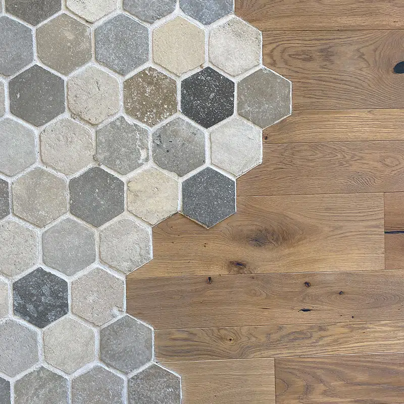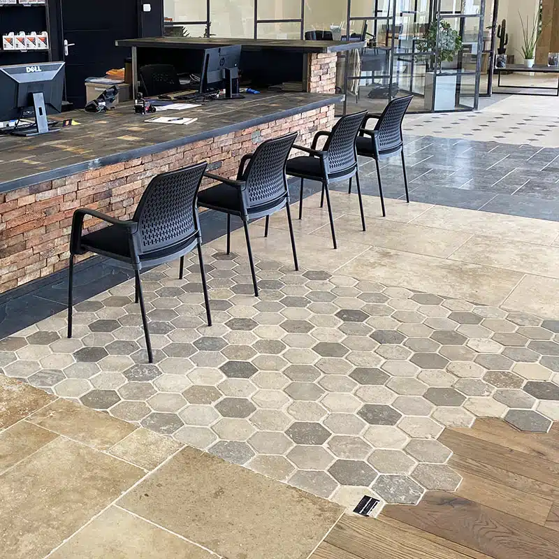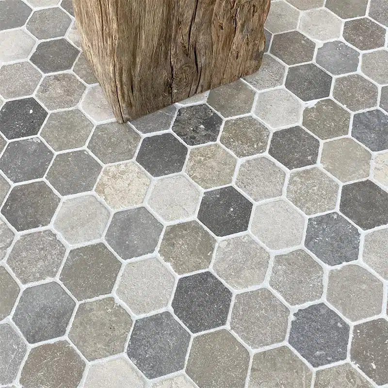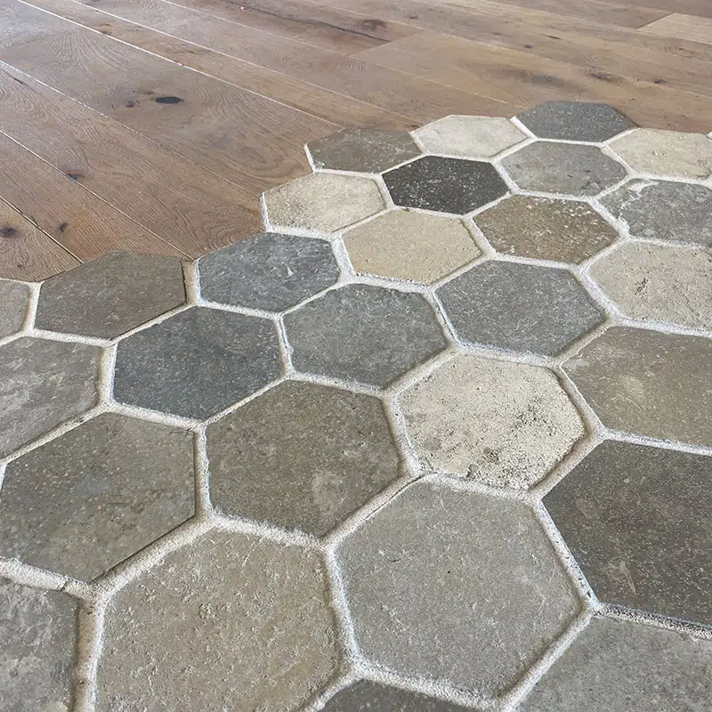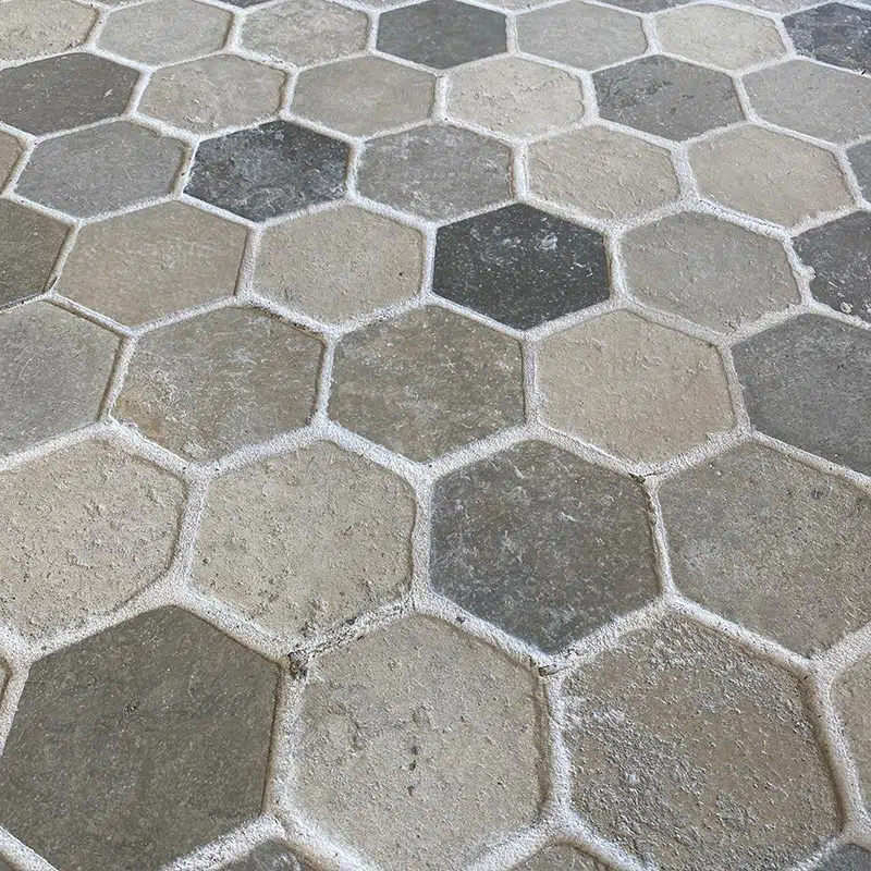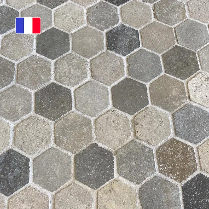 Dallage “Hexagonal Bergerac” finition vieillie.